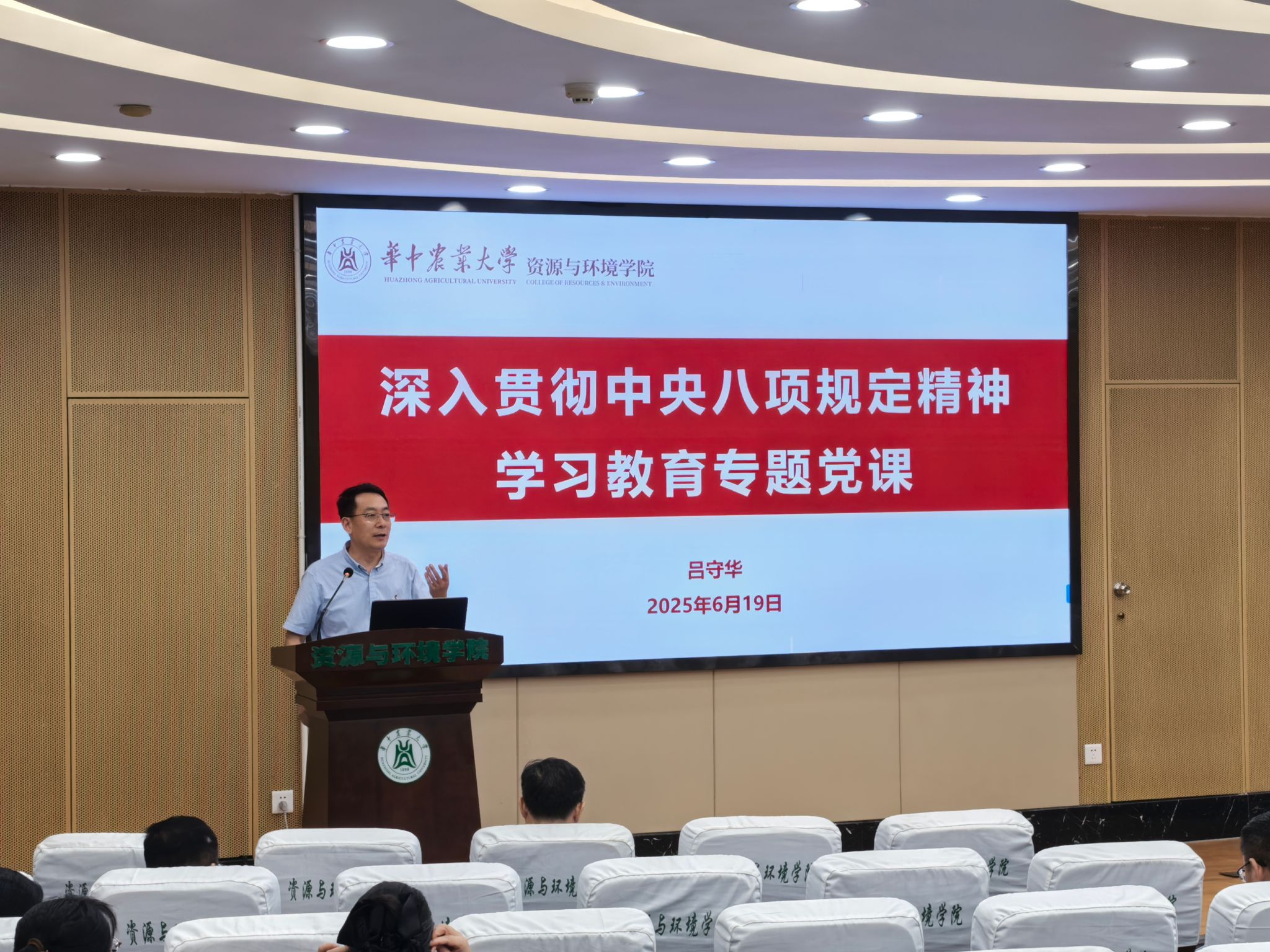 学院党委书记吕守华结合深入贯彻中央八项规定精神学习教育讲授专题党课,他围绕中央八项规定和中央八项规定精神的区别、违反中央八项规定精神问题的主要类型和典型案例等进行了详细解读,并传达了关于集中整治违规吃喝的相关工作要求,通报了违规吃喝问题典型案例。吕守华强调,全院教师要持续深入学习习近平总书记关于加强党的作风建设的重要论述和中央八项规定及其实施细则精神,进一步聚焦学深悟透、扎实开展学习研讨,进一步聚焦问题导向、深入全面查摆问题,进一步聚焦事业发展、持续推进集中整治,坚持学查改一体推进,以高度的政治自觉推动深入贯彻中央八项规定精神学习教育走深走实。