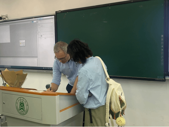 “双师”协同驱动,打造高效开放课堂。课程采用“外教主讲+中教辅助”的创新模式,有效激发了学生的学习主动性,广受好评。外国语学院张银河同学特别提到:“学生提问环节中,Hammond教授总是热情鼓励‘This is a good question’,这种积极反馈让我们倍感轻松。同时,石磊教授会在关键知识点处补充中文解释,用更符合我们认知习惯的方式剖析难点。”这种外教生动的案例演绎与中教精准的术语解析相辅相成,如同“双引擎”驱动,使得全英文专业课堂既保持了国际化的开放氛围,又确保了知识传递的高效性。