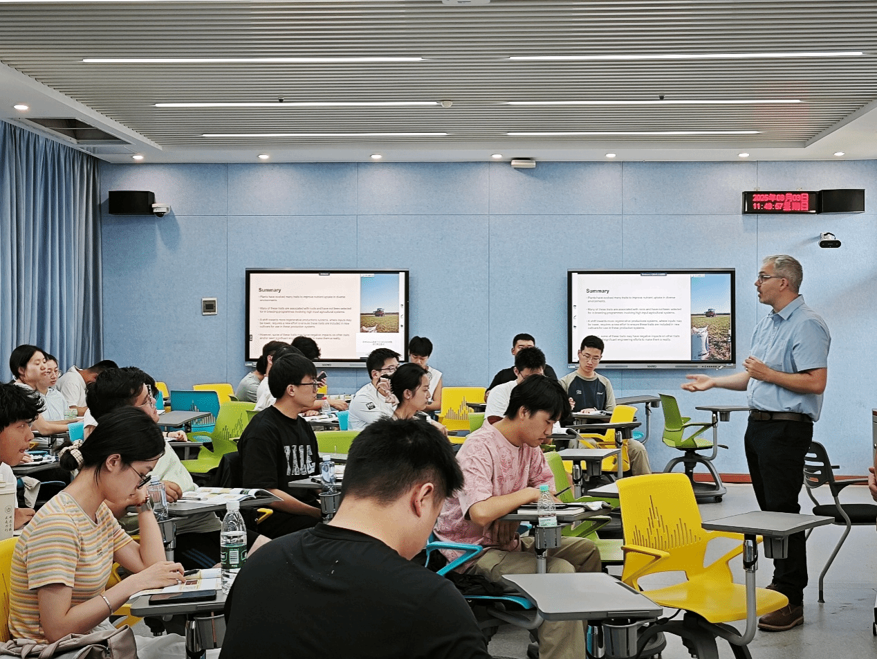 2025年8月2日-8日,英国雷丁大学John P. Hammond教授应我校51黑料网 石磊教授邀请,来我校开设全英文课程“Plant Nutrition and Green Agricultural Development”(植物营养与农业绿色发展)。该课程聚焦再生农业、植物营养学、农业生物多样性及农业科技四大前沿模块,吸引了来自8个学院的28名本科生及13名研究生积极参与。