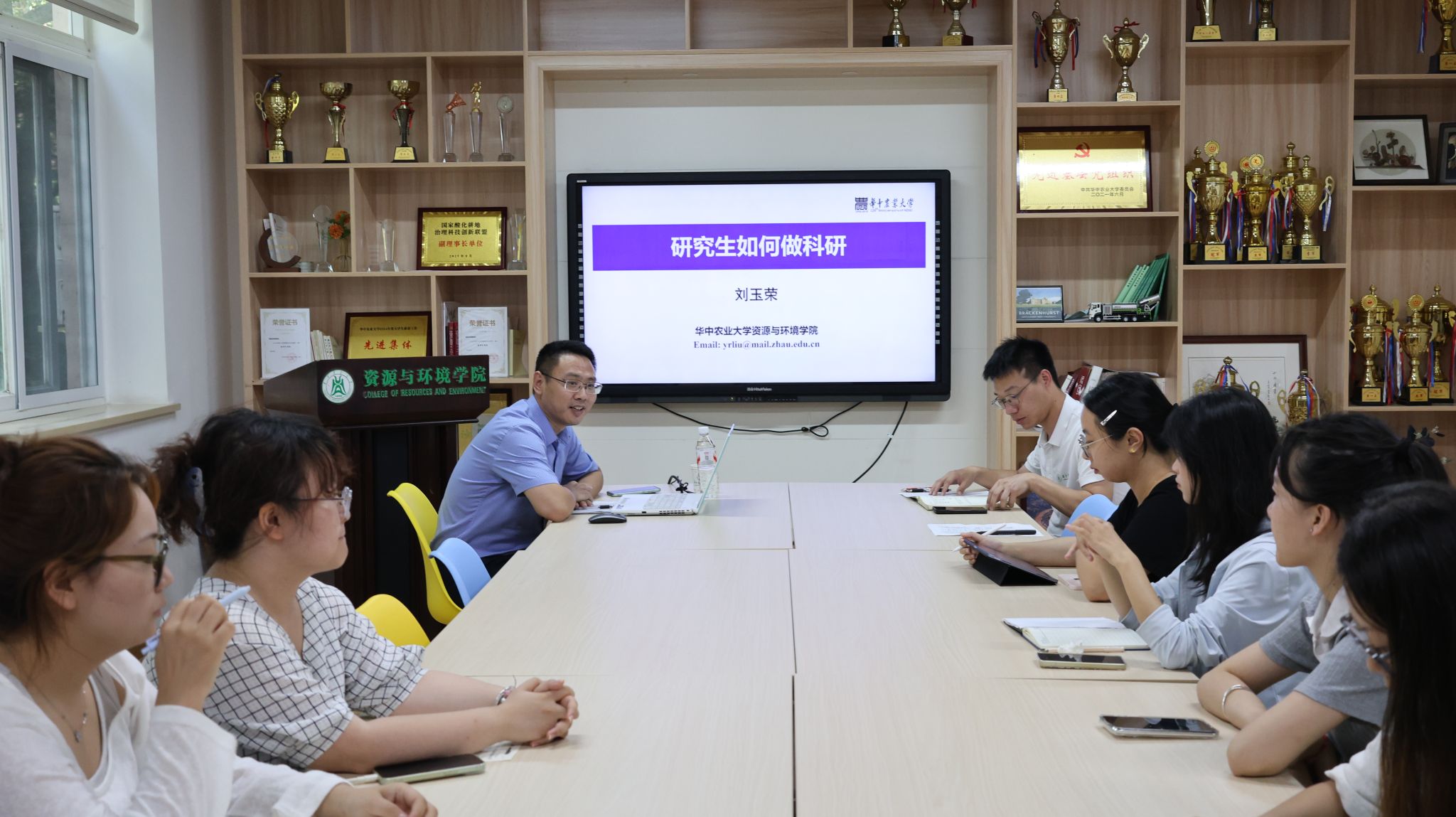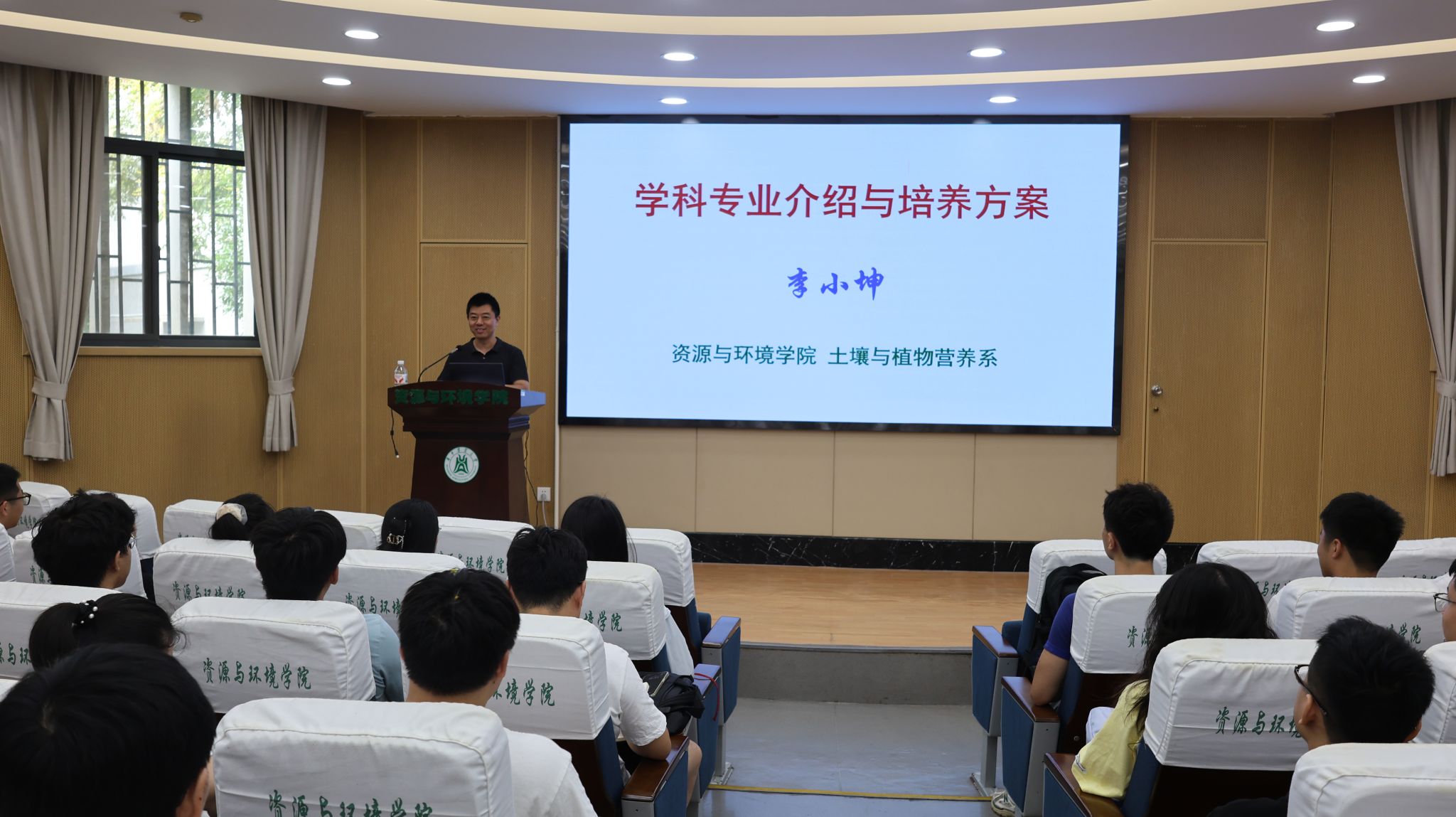 在“学科前沿”介绍会上,李小坤教授以“万物土中生”为引,系统介绍了土壤与植物营养系的专业建设与人才培养方案。最后,他殷切嘱托同学们:在日常学习中要勤于思考、勇于发问;即便实验遇到困难甚至失败,也要学会从中总结经验、持续向前——这才是真正的科研成长之路。邱国红教授系统阐述了环境科学与工程领域的重要发展方向,他指出,环境科学与工程不仅涵盖环境污染治理、生态修复等传统方向,更在服务国家战略中展现出广阔前景。刘诗诗教授系统阐述了地理信息技术如何成为助推农业绿色发展的关键力量。她指出,以地理空间信息技术为核心,通过多源数据融合、空间智能分析方法和星空地一体化监测手段,正深刻改变着现代农业的发展模式。