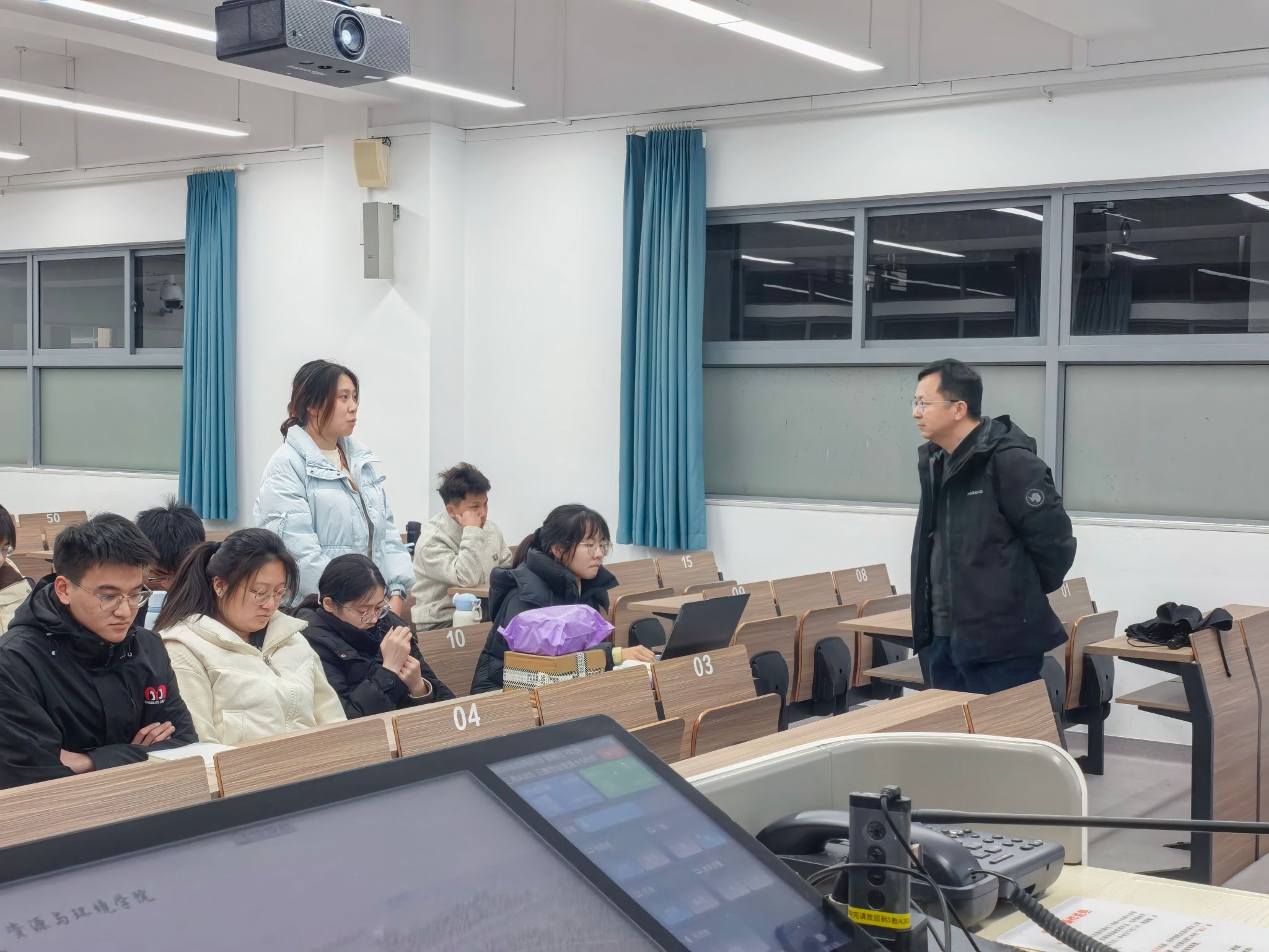 环科 2401 班的班会聚焦科技发展与青年成长,院长蔡鹏教授围绕人工智能发展趋势与同学们展开深度交流,引导大家思考在 AI 浪潮下的自身定位与发展方向,鼓励同学们主动拥抱时代变革,不断提升核心竞争力。他从认知升级、跨文化沟通、行动力提升三个维度提出建议,希望同学们在科技飞速发展的背景下,始终保持学习的敏锐度与主动性,培养跨学科思维,提升综合素养,以过硬能力适应时代发展需求。
