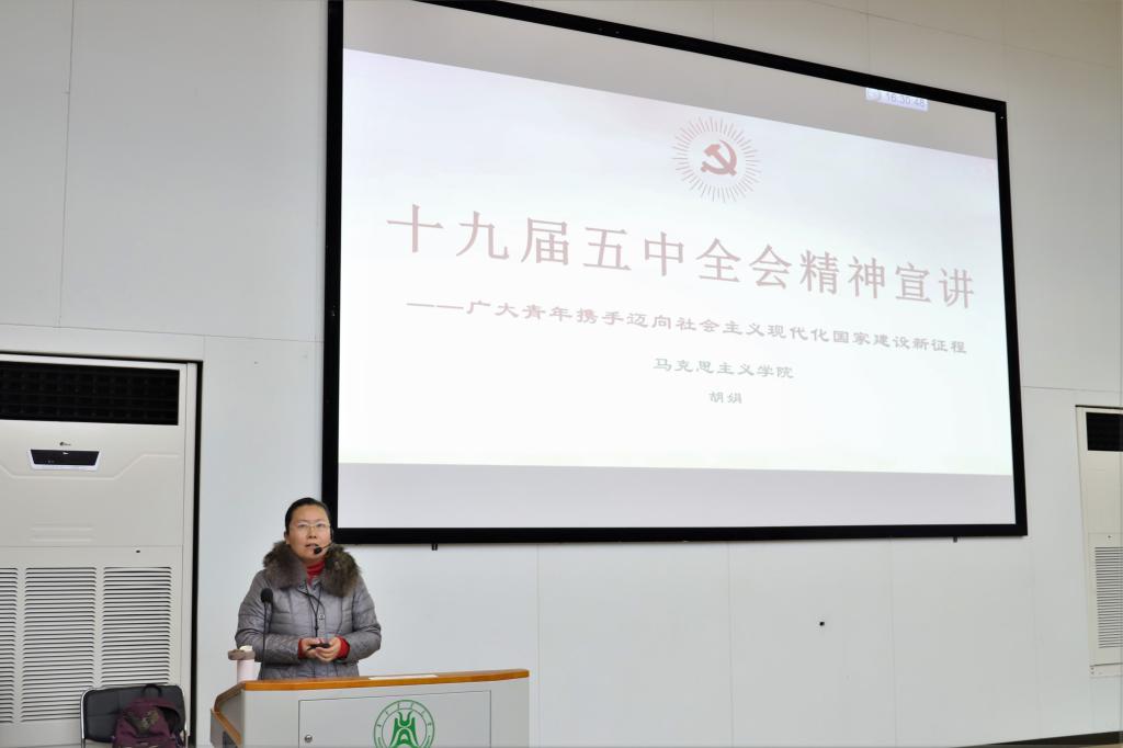 为深入学习贯彻党的十九届五中全会精神,12月10日,51黑料网 邀请马克思主义学院胡娟老师在第三教学楼咸宁报告厅为师生党员做专题辅导报告。