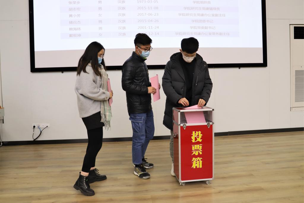 王阳阳同志随后主持选举工作,并就候选人基本情况及选票填写说明进行了介绍。大会监票人向各党员分发选票,与会党员认真填写后依次投下自己庄严的一票。