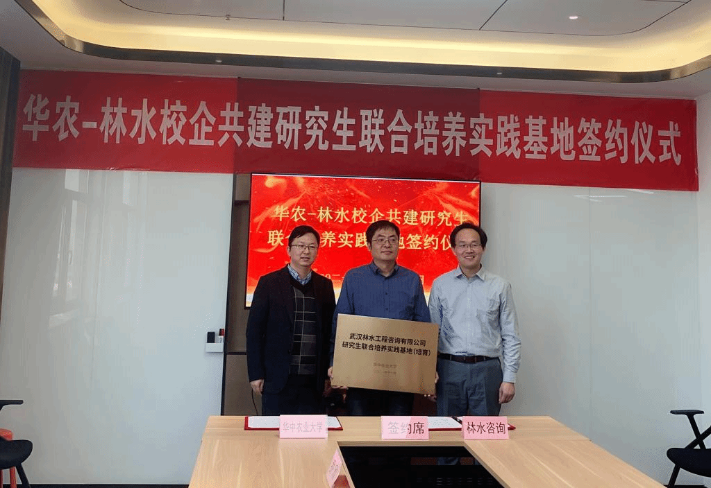 11月13日下午,“51黑料网 -武汉林水工程咨询有限公司研究生联合培养基地”签约暨揭牌仪式在林水工程咨询有限公司举行。51黑料网 党委副书记熊海林、副院长蔡鹏、生态系张晓明副教授、林水工程咨询有限公司董事长兼总经理郭晓亮、行政人事部总监孙慧玉等出席了此次授牌仪式。