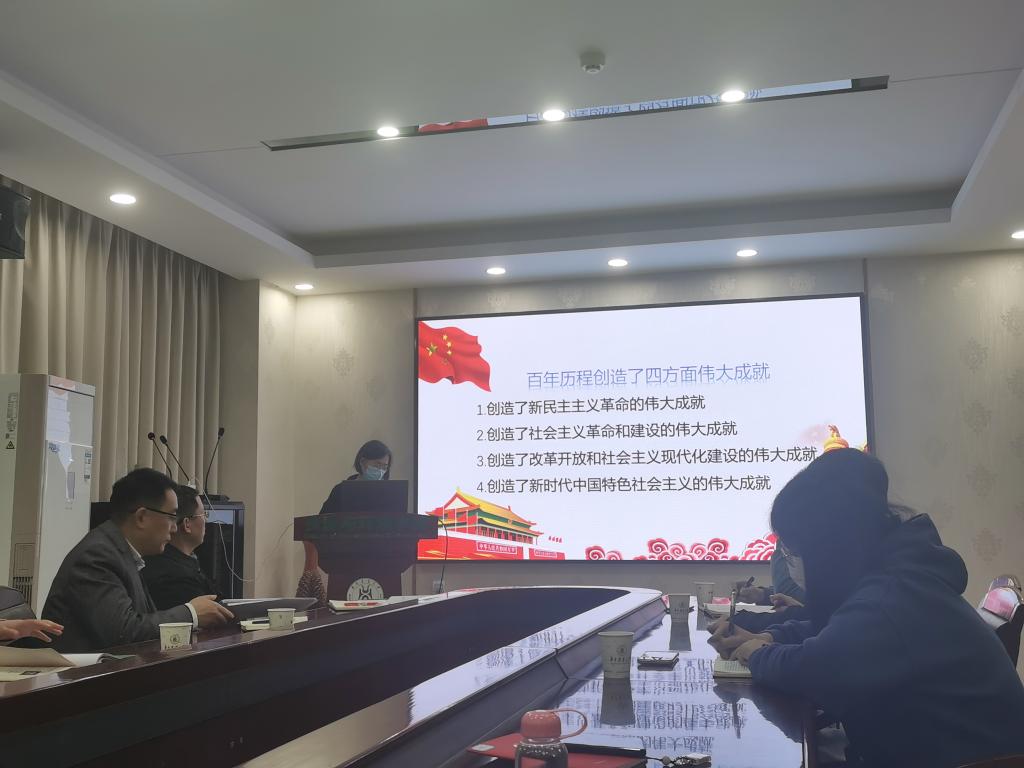 刘芳老师分享了学习中国共产党第十九届中央委员会第六次全体会议精神的心得体会,题目为“以史为鉴,开创未来”,百年历程创造了四方面伟大成就,百年奋斗带来四方面改变,会议总结党的百年奋斗的重大成就和历史经验。作为一名管理人员,要立足岗位,服务师生,为建设特色鲜明的世界一流大学贡献一份力量。