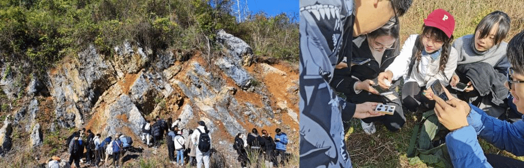 在野外课堂中,老师们现场教学与学生们野外动手实践相结合。同学们除了全面了解实习区的地理时空变化之外,还练就了一些野外调查小技能,如地质锤、罗盘、土壤比色卡、pH指示剂等地质工具的使用;提高了地理思维能力及分析和解决地理学问题的能力。