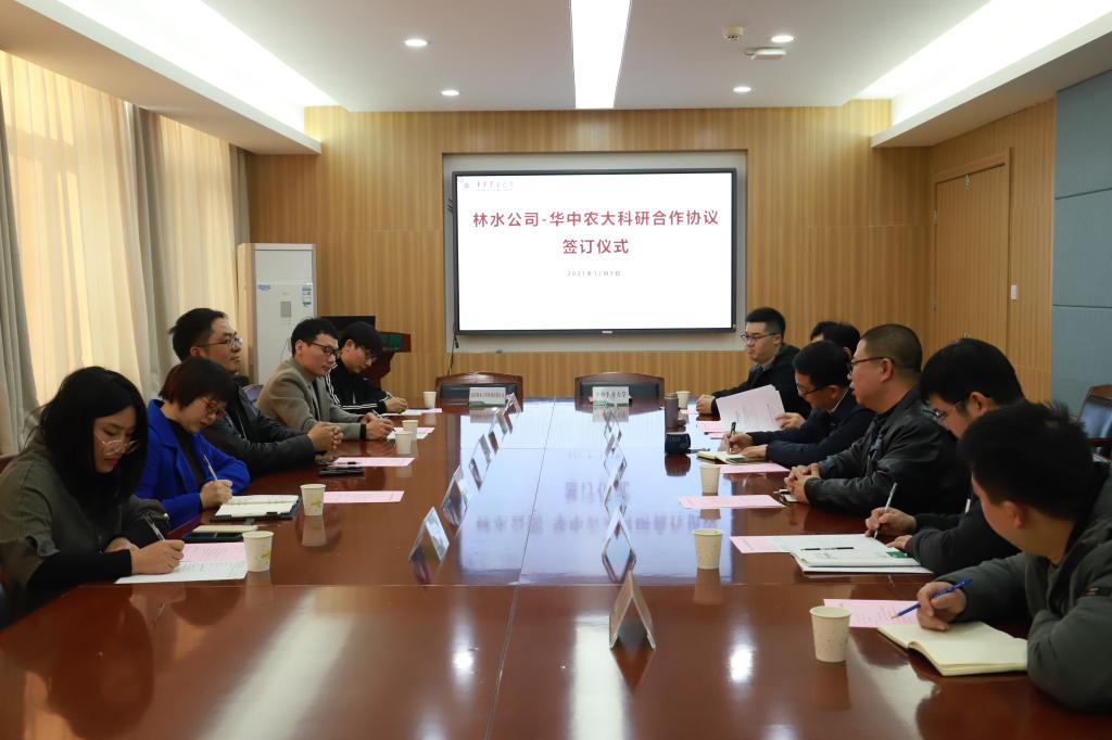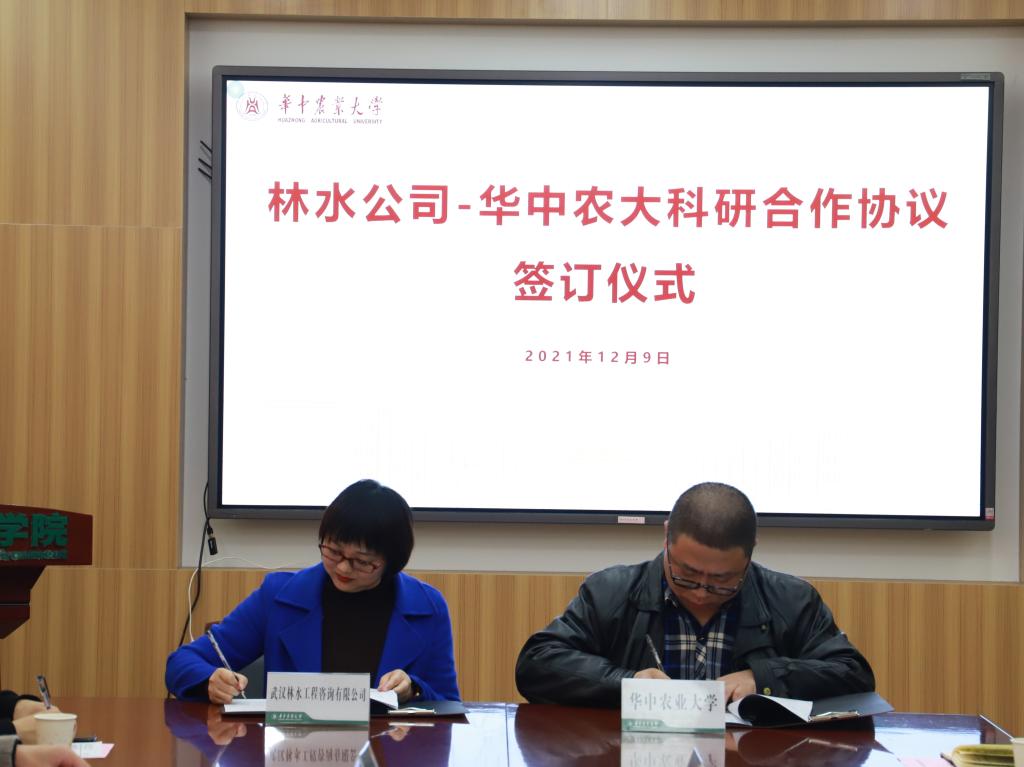 与武汉林水工程咨询有限公司举行科研合作协议签订仪式。林水公司总经理郭晓亮、副总经理谭钧文及企业相关负责人,学院党委书记吕守华、副书记熊海林和张晓明副教授等出席签订仪式,会议由熊海林主持。
