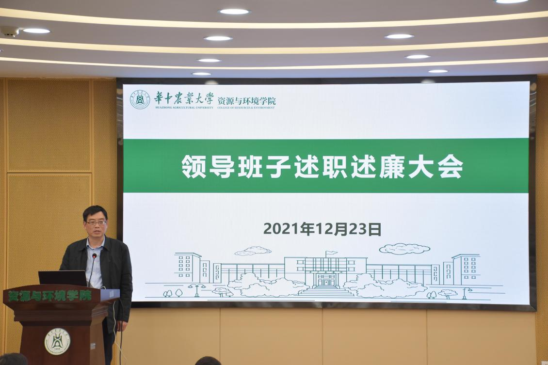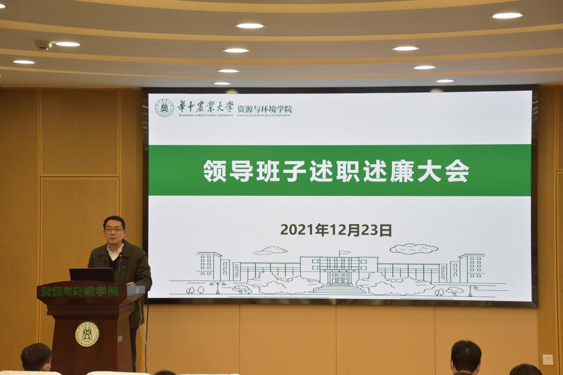 院长谭文峰首先对学院2021年度工作进行总结汇报,他从党建与思政工作、本科人才培养、学位与研究生教育、科技工作、学科建设、社会服务、国际合作与交流、人事人才工作、离退休与群团工作、文化建设与文明培育、平安绿色校园建设、校友工作、改革创新工作等方面进行报告。谭文峰谈到,在全院教职工的共同努力下,各项工作全面推进,众多项目取得突破,4名青年老师入选省部级人才项目,实施青年教师“绿苗计划”,举办31期青年教师交流与发展论坛,立项支持3个团队建设;平台与基地建设捷报频传,获批“农业农村部耕地质量标准化验室”与CMA通过现场评审,完成教育部咸宁贺胜桥野外观测站升级改造,国家农业科学咸宁观测实验站通过答辩;获批科研经费近1.2亿元。