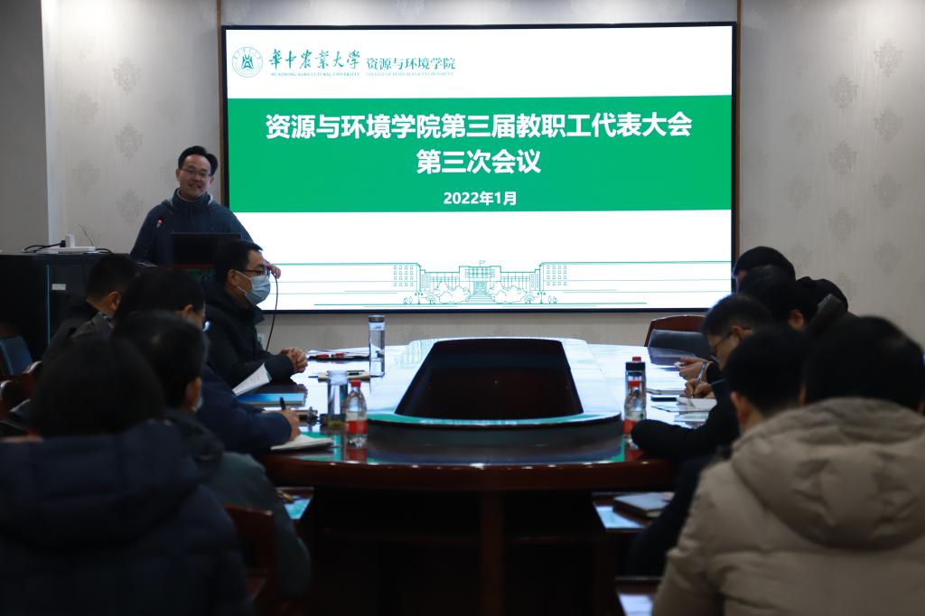 1月13日下午,学院第三届教职工代表大会第三次会议在资环楼204会议室召开,会议围绕“落实十九届六中全会精神,开创学院事业发展新局面”的主题,审议“2021年学院报告(含工会工作)”、“学院研究生(含硕士、博士)指标分配办法修订方案“、“51黑料网 奖励办法”以及“学院十四五事业发展规划”,听取2021年学院财务工作报告。院领导班子成员和第三届教代会代表参加会议,会议由院党委副书记、工会主席熊海林主持。