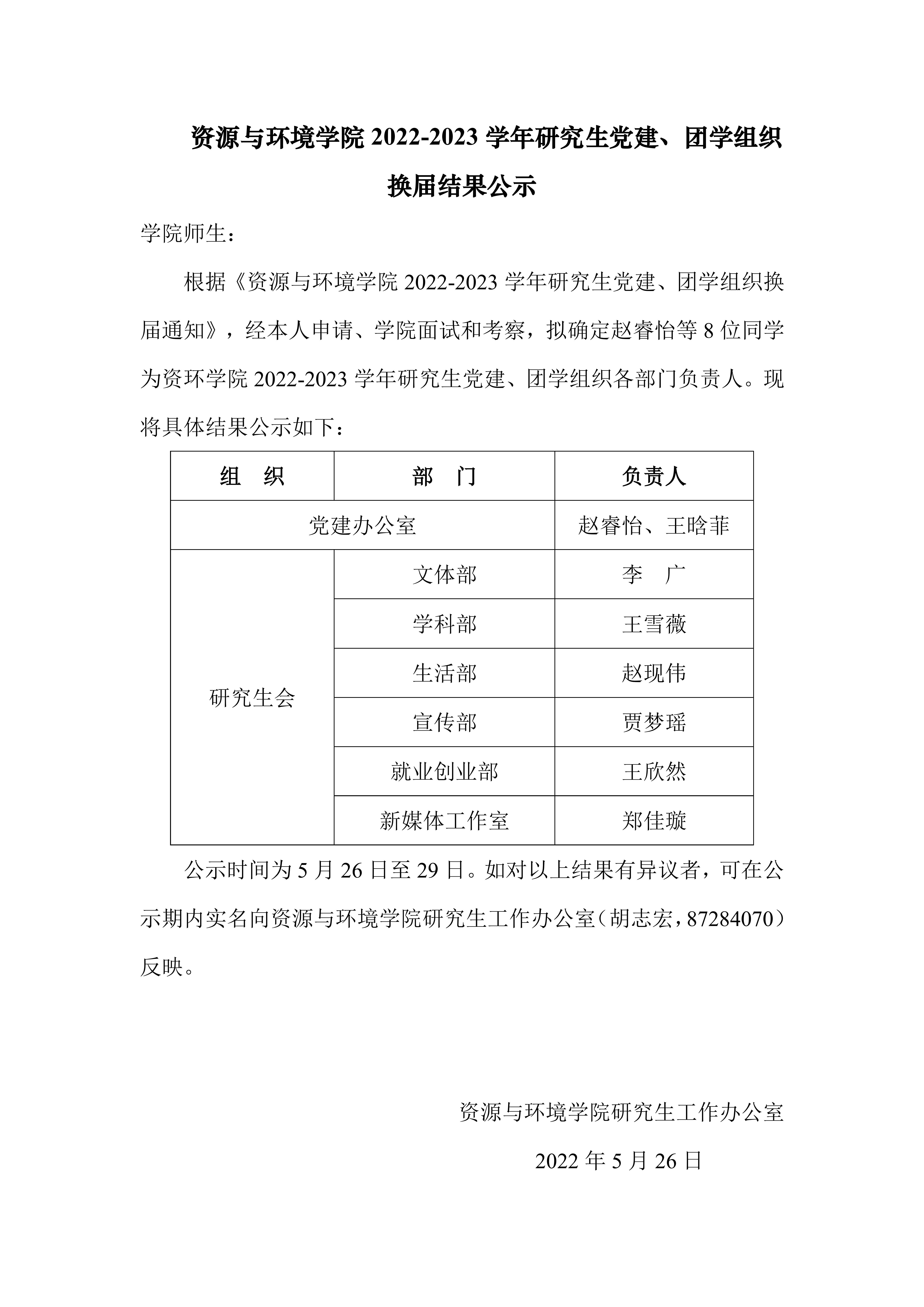51黑料网 2022-2023学年研究生党建、团学组织换届结果公示