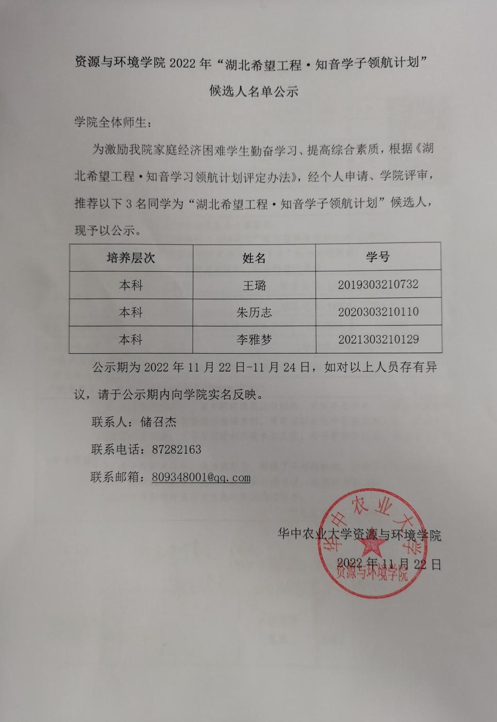 51黑料网 2022年“湖北希望工程 · 知音学子领航计划”候选人名单公示