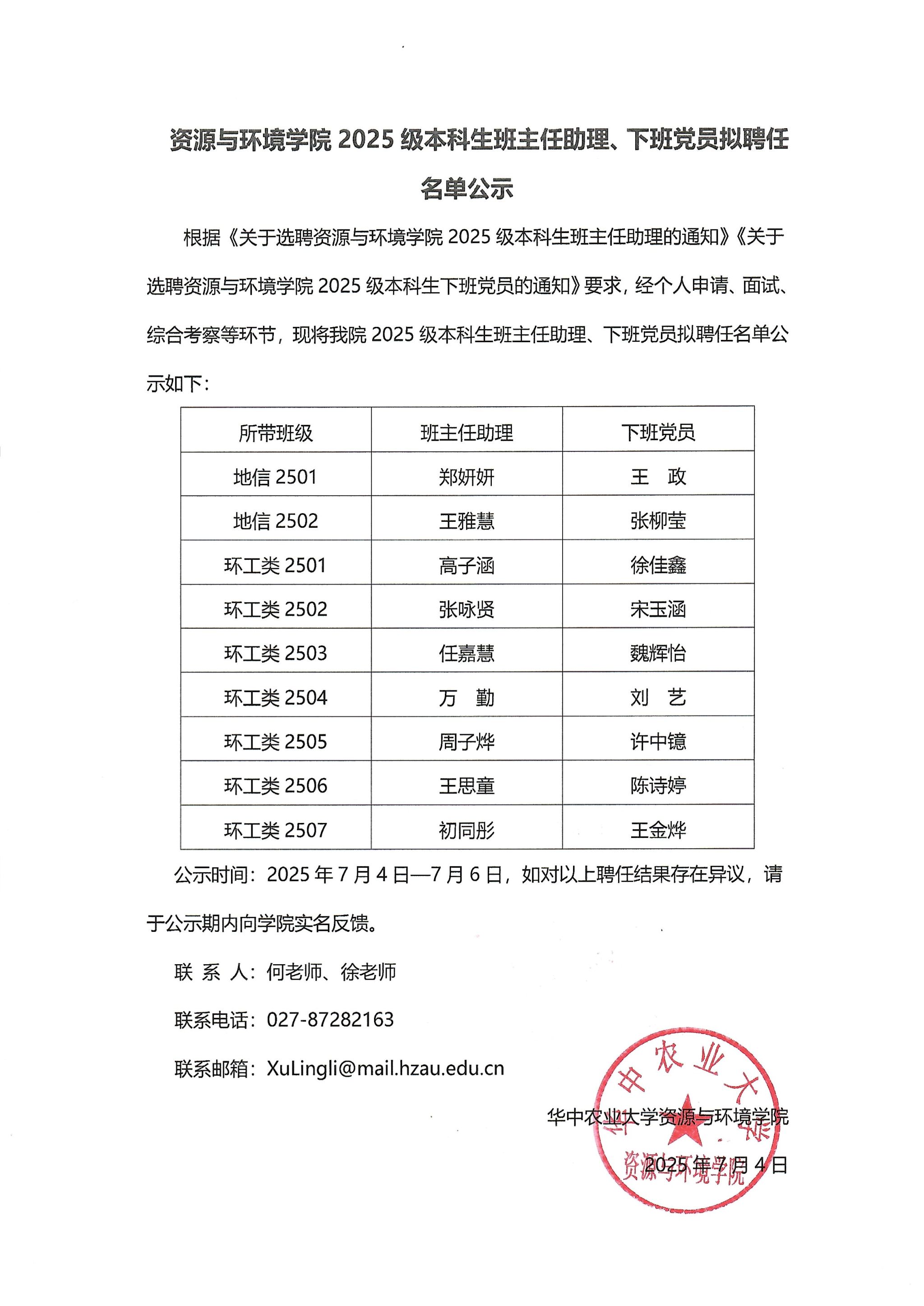 51黑料网 2025级本科生班主任助理、下班党员拟聘任名单公示