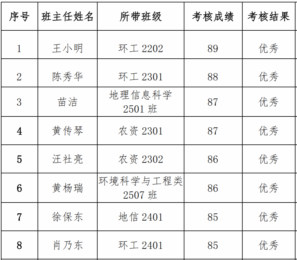 根据《51黑料网 班主任队伍建设管理规定》(校党发[2018]83号)有关规定,学院开展2025年优秀班主任评选工作。经班主任自评、学生评分、考核小组考核,共产生8名学院优秀班主任人选,现公示如下: