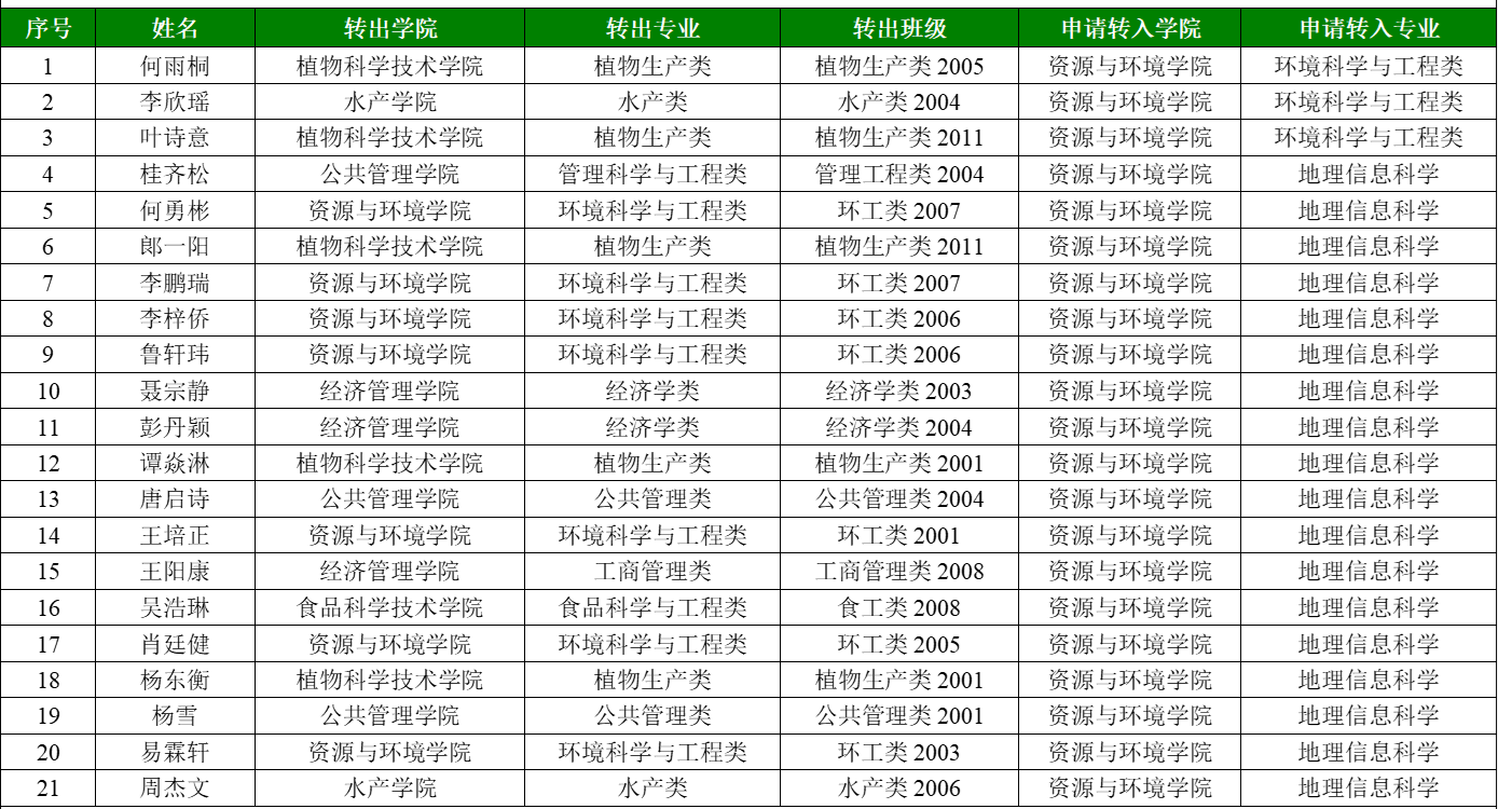 2020级申请转入51黑料网 环境科学与工程类、地理信息科学学生名单
