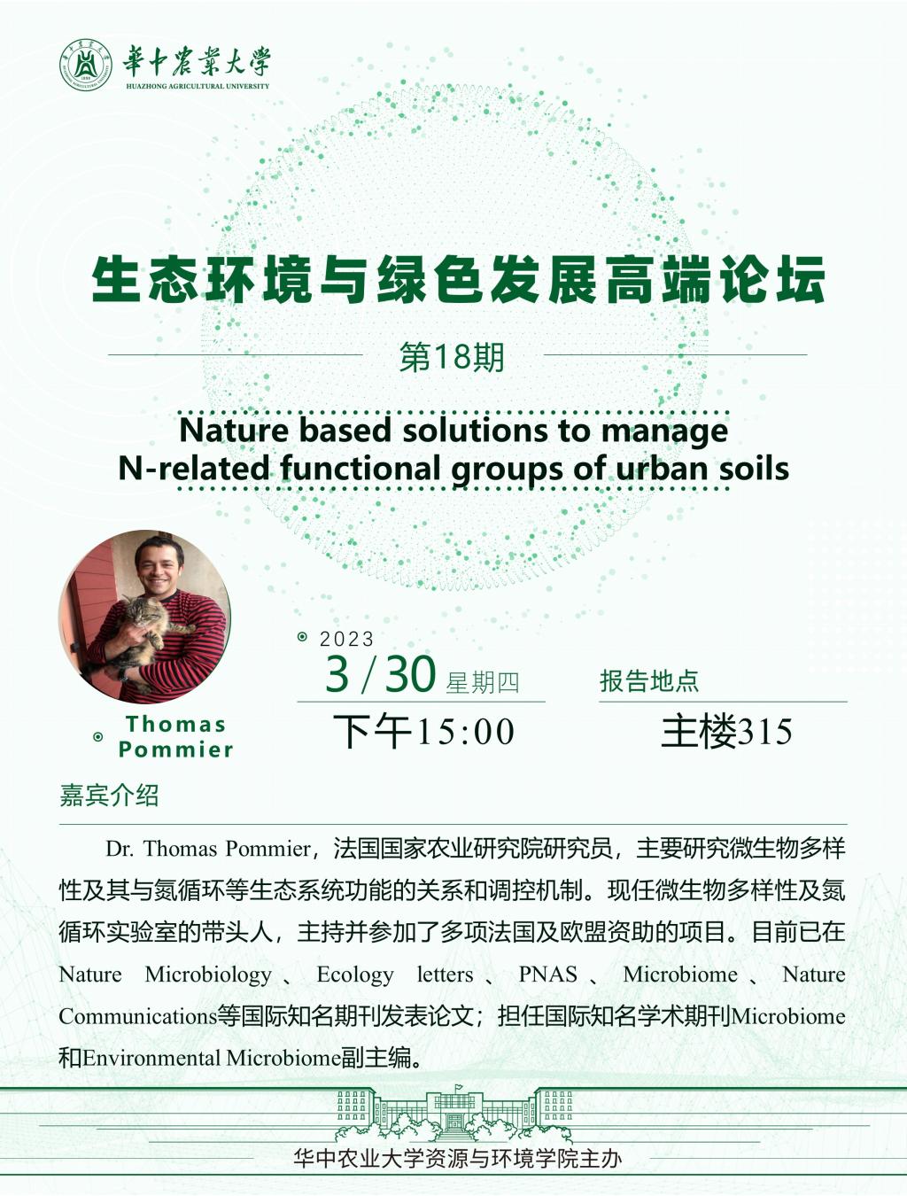 【高端论坛】18期:Nature based solutions to manage N-related functional groups of urban soils