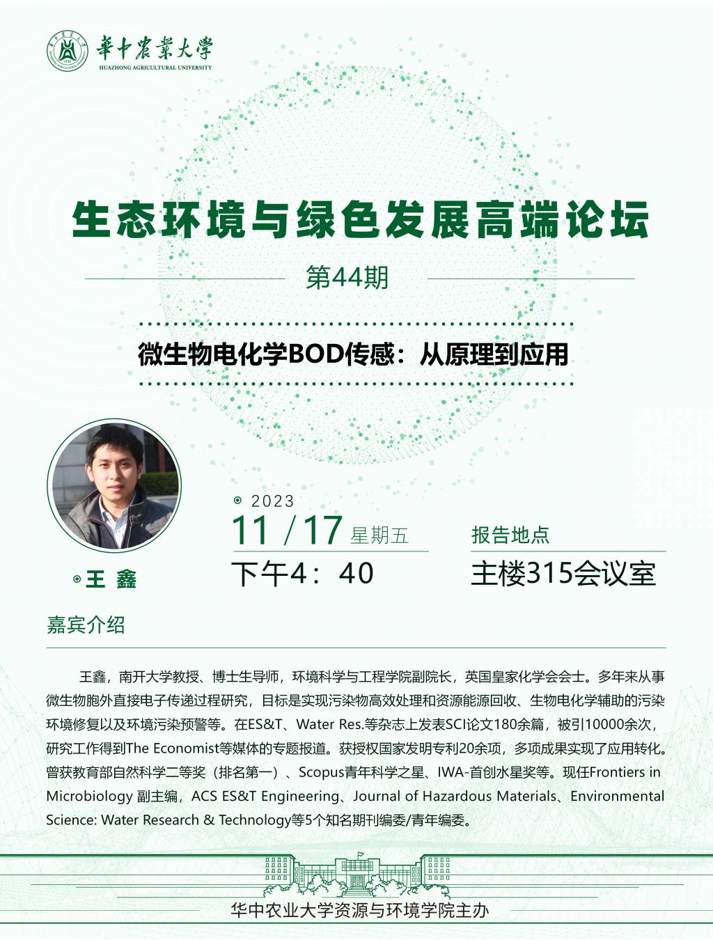 【高端论坛】44期:微生物电化学BOD传感:从原理到应用