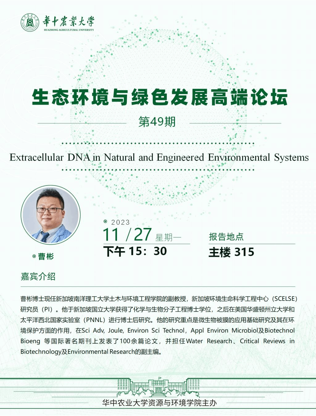 下一篇:【高端论坛】第48期:Biofilm Engineering for Environmental Biotechnological Applications
