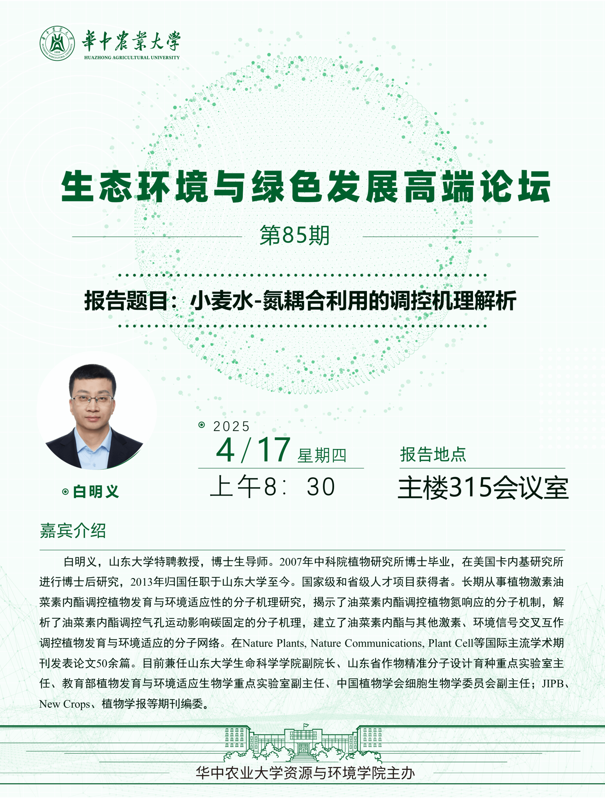 【高端论坛】第85期:小麦水-氮耦合利用的调控机理解析