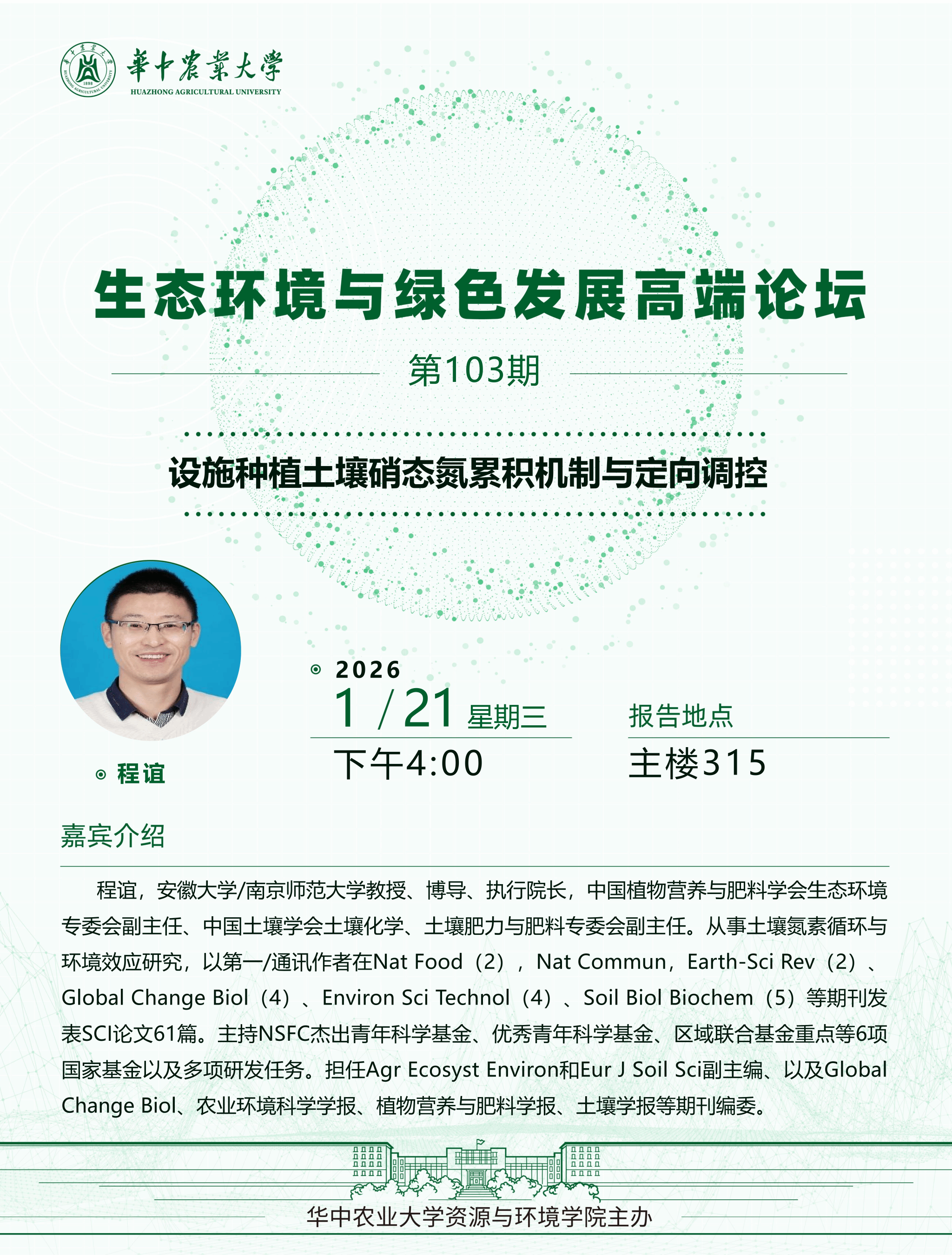 【高端论坛】第103期:设施种植土壤硝态氮累积机制与定向调控