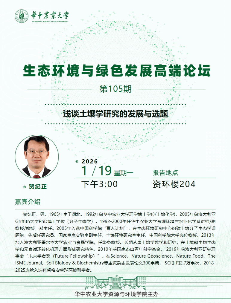 【高端论坛】第105期:浅谈土壤学研究的发展与选题