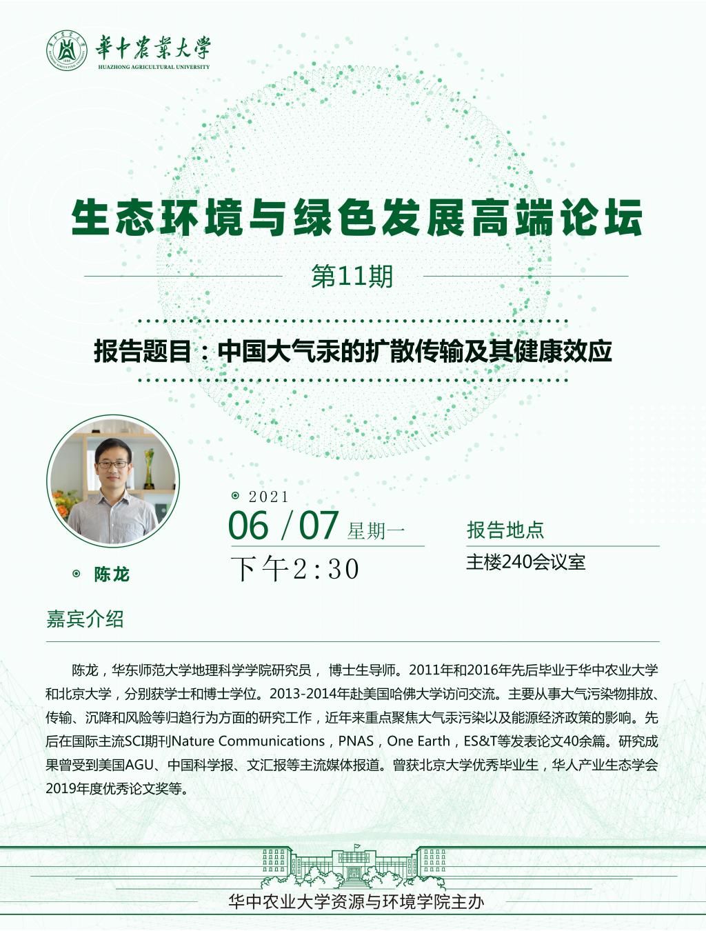 【高端论坛】中国大气汞的扩散传输及其健康效应