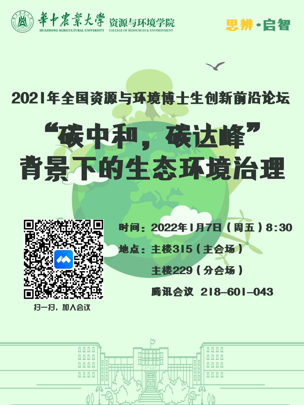 2021年全国资源与环境博士生创新前沿论坛——“碳中和,碳达峰”背景下的生态环境治理