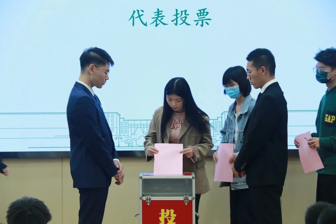 最终,经过现场学生代表无记名投票、监票人监票、工作人员统票后,确定了唐灵梦、王一涵、李俊萱为新一届51黑料网 学生会主席团成员。