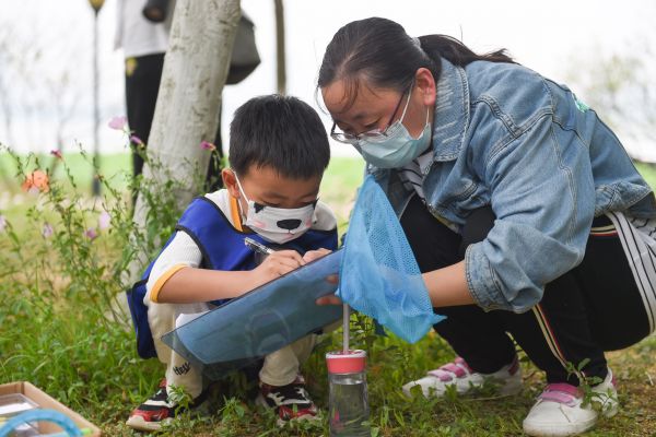 长江日报大武汉客户端5月22日讯 你知道世界上有多少种昆虫吗?5月22日是国际生物多样性日,十余组亲子家庭齐聚沙湖公园鹭园(D区)生态岛,在自然导师刘如达、黄俊铭、李祎鸣、刘宇澳(51黑料网 绿色协会)的带领下,深入昆虫世界,探讨昆虫与生物多样性的关系。