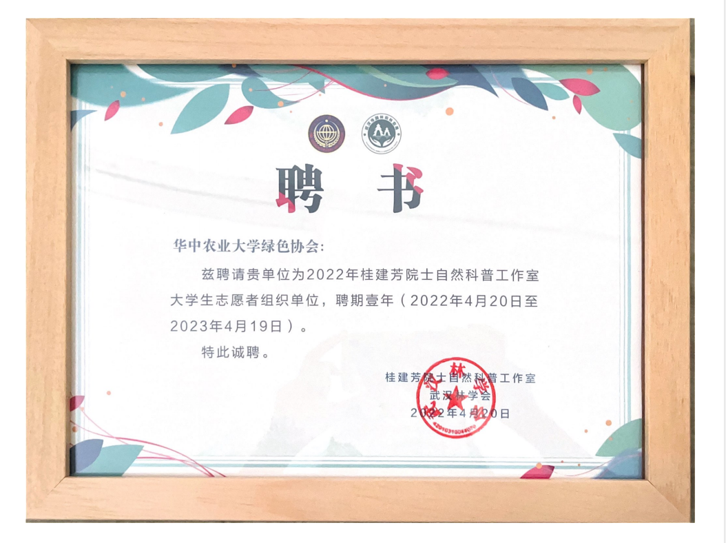 据介绍,“桂建芳院士自然科普工作室”以中国科学院院士、发展中国家科学院院士桂建芳领衔命名,于2021年4月在解放公园揭牌启用,是全国首个开在城市公园、与公众直接面对面的院士自然科普工作室。我校绿色协会志愿者立足专业,积极协同工作室开展自然教育,在助力自然科普志愿服务中彰显青春底色。