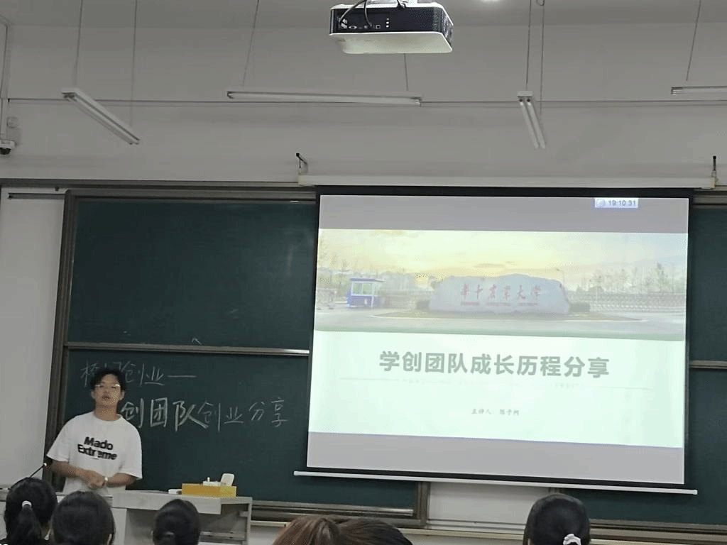随后陈子柯分享了其学创团队的创业经验,并讲述了如何开展创业工作、创业资金从何处来的问题,接着介绍了学创团队的部分代表创业项目,学创团队创立了华农唯一一家校内驾校,每年为学生提供优质服务,为学生顺利拿证保驾护航。