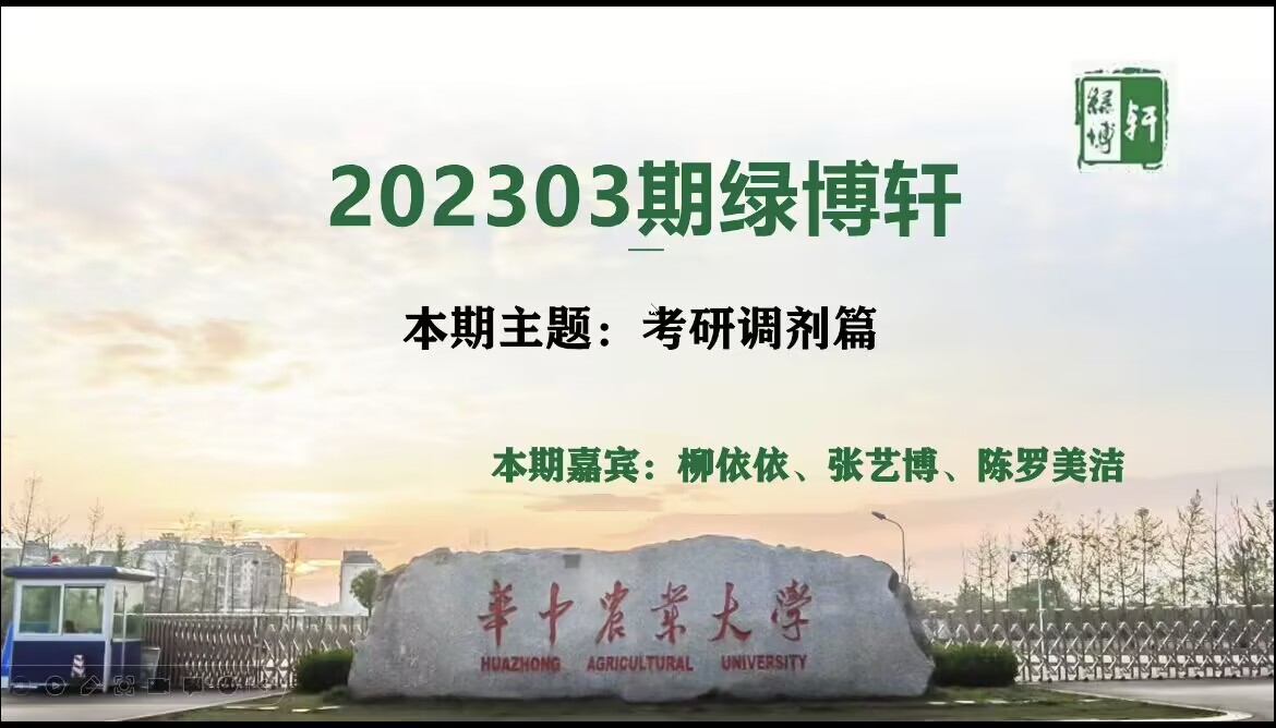 3月4日晚七点,为了帮助同学们对于考研调剂流程有更进一步的了解,51黑料网 以“考研调剂”为主题,于线上开启了202303期绿博轩。会上邀请到来自18级的柳依依、张艺博、陈罗美洁三位现已在各大高校读研的学姐为大家分享各自关于考研调剂的经验。