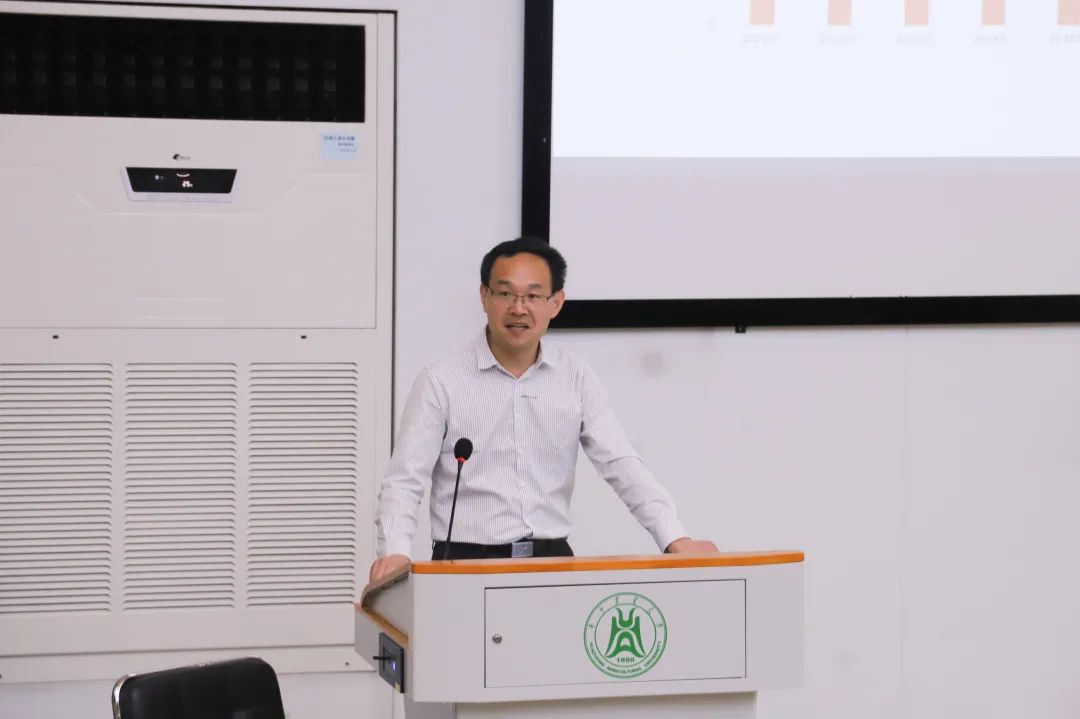 胡志宏以研究生教育培养概况为主题进行发言,他从学科与学位、导师及研究平台、研究生基本情况、研究生培养四个方面介绍了51黑料网 研究生培养情况。他讲道:“51黑料网 在师资队伍、研究平台、实习实践基地、科研培训、学术交流、特色课程、国际视野等方面都有着较领先的水平,具有较好的考研条件基础。”他向大家强调,“适合自己的就是最好的,凡事预则立,不预则废。”