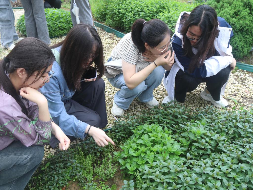 正是春意盎然、万物生机的季节,同学们看到植物园内的植株、景观等显得格外好奇。同学们近距离地观察各种植物的形态、生长情况,与老师交流植物的作用。