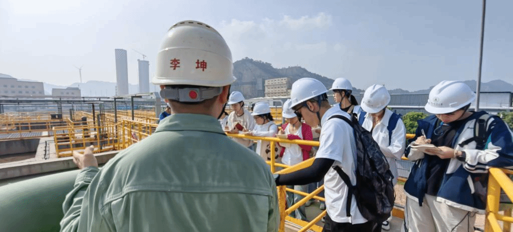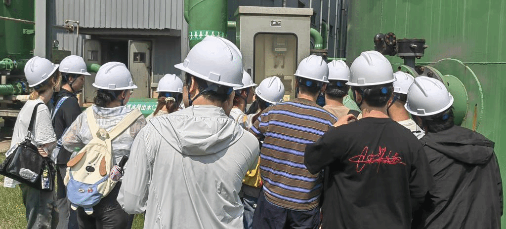 在公司相关负责人的热情接待下,同学们首先了解企业整体情况,接受公司一级安全教育,集中学习实习车间生产工艺流程,然后分别前往总控室、气化锅炉车间、水处理厂和氨合成厂实习。总控室内,同学们近距离观摩了高度集成、精密运作的中控系统,体会到科技改变生产力的力量。生产现场,看着如蛛网般排布的粗粗细细管道、错落有序排列的生产设备与设施,同学们不禁提出了问题:为什么管道有不同颜色?为什么设备有圆有方?它们是什么构造和原理?有什么作用?面对提问,现场工程师们带领着同学们沿管道顺序介绍了工艺物质的走向与变化,设备的结构、原理与主要参数,为同学们一一解惑。当走进污水处理厂和净水厂时,同学们看到自己熟悉的设施,变得自信从容起来,和工程师之间展开了热烈地互动。有对已知的深度理解,也有对新知识的好奇,许多生产“难题”和“秘决”被分享出来。例如,如何通过改进设计节约处理成本、如何调整生化池参数以适应新的污水处理需求等,这些交流使同学们切实体会到扎实的专业基础在实际应用中的重要性,以及技术攻关的艰辛与不易。炎炎烈日下,工程师额头如注的汗水,同学们专注的眼神,传递着敬业精神和对知识的渴望。