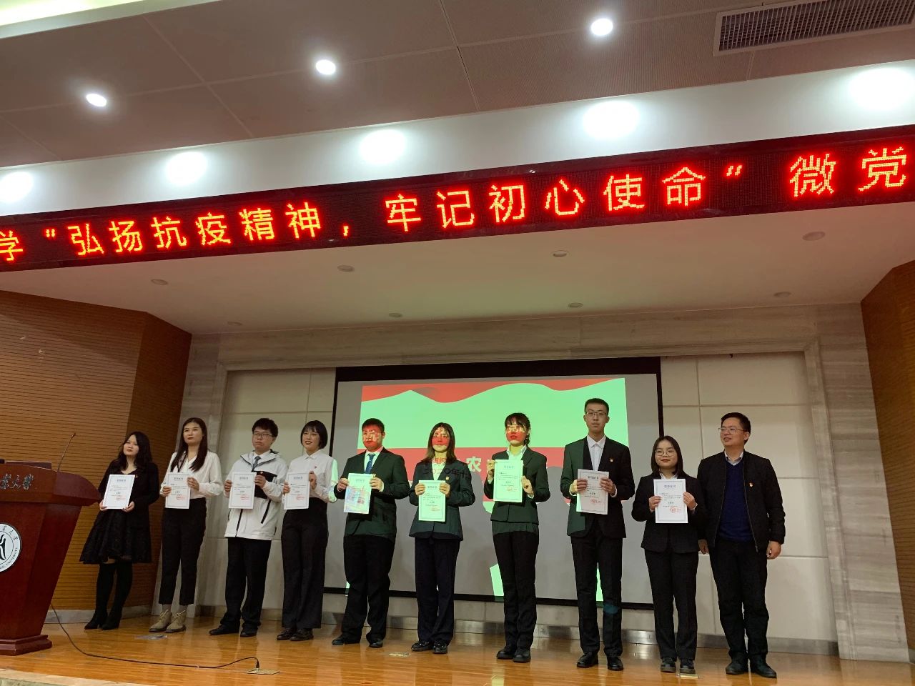 我校于12月10日在学生综合服务楼501报告厅召开“弘扬抗疫精神,牢记初心使命”微党课大赛决赛。经过初赛选拔,51黑料网 本科生第二党支部朱玉杰、本科生第三党支部龚子龙参加本次决赛。