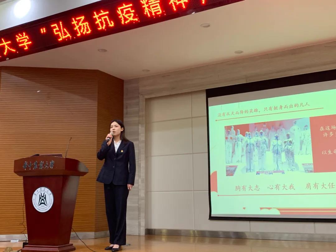 最后,龚子龙同学激动的说道:“让我们大力弘扬抗疫精神,坚持人民与生命至上,戮力同心,锐意进取,为实现中华民族伟大复兴贡献自己的力量!”