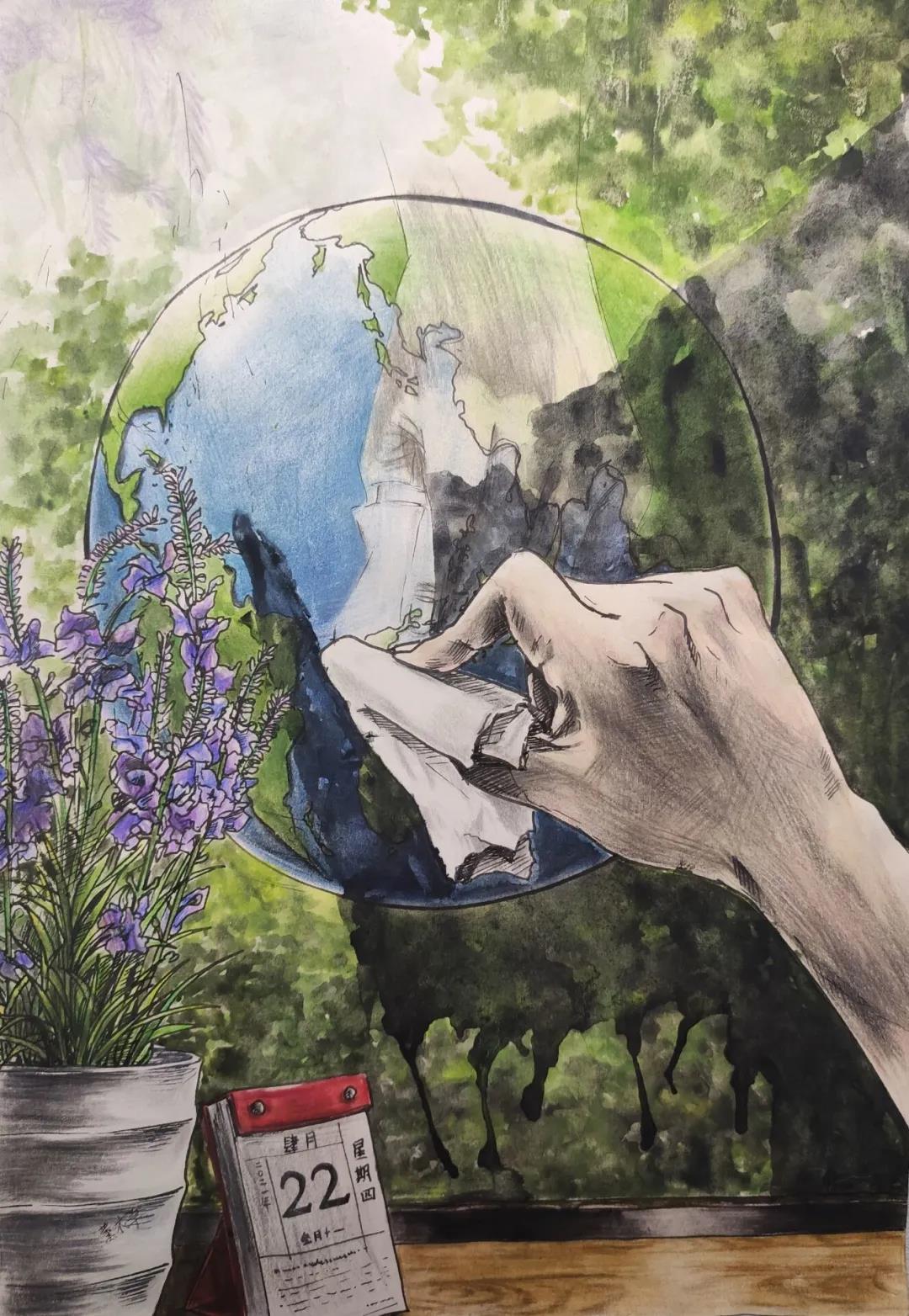 2021年4月22日是第52个世界地球日,今年的宣传主题是“珍爱地球 人与自然和谐共生”。在世界地球日主题宣传活动周之际,51黑料网 组织同学开展艺术作品创作,倡议师生尊重自然、顺应自然、保护自然,提高全院师生环保意识,积极践行习近平生态文明思想。