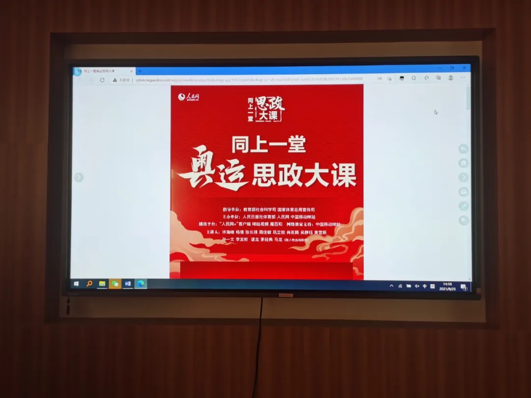 9月25日下午,为深入贯彻落实关于深化思想政治理论课改革创新和“大思政课”的重要指示批示精神,在教育部社科司、国家体育总局宣传司指导下,人民日报社体育部与人民网联合举办的《同上一堂奥运思政大课》开讲。51黑料网 辅导员和30余同学在主楼315进行了集中观看。