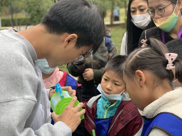 接着,小朋友每人领到一个捕虫网和一双手套,开始户外观察。有小朋友注意到,当捕虫网触碰到草丛间,会有很多细小的虫类飞出,刘如达解释道,这些细小的虫子是摇蚊,并不会攻击人。摇蚊生命周期极短,通常仅有1-3个月,目前所发现的这些摇蚊无法越冬,它们躲在草丛中是为了躲避冬日寒风。